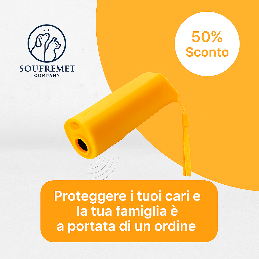Emette onde ultrasoniche non udibili dall’uomo, ma che allontanano immediatamente i cani. Non le senti e non disturbi chi ti sta intorno — una soluzione silenziosa ma potente.